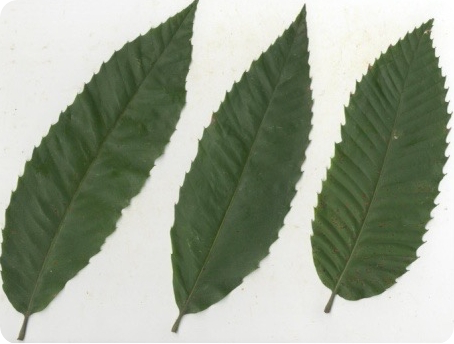 Nagy méretű, megnyúlt alakú, párhuzamos oldalerű, szálkásan fogazott szélű. A hazai genotípusokon, a levelek átellenes állásúak, így a levélfelület fény hasznosítása kedvezőbb.